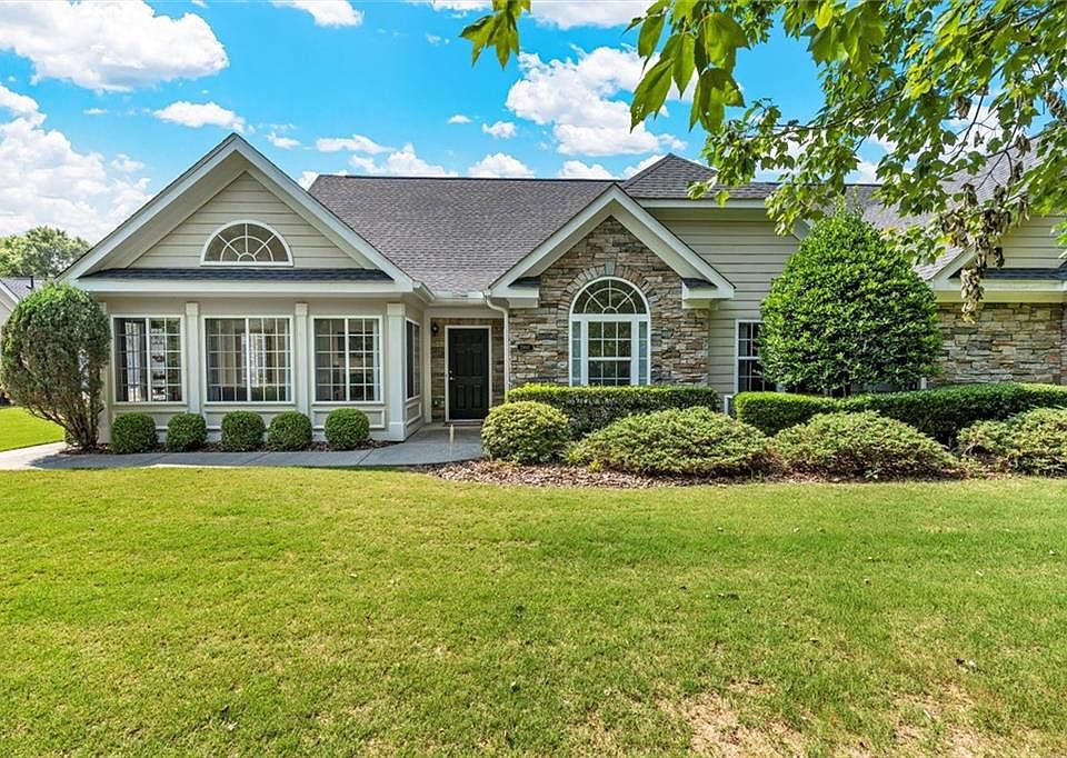 PRIVACY and LOCATION! This amazing ONE-STORY CONDO located in the safe, gated ORCHARDS of WINDWARD 55+ community -situated in the heart of Milton - is nestled onto arguably one of the BEST LOTS IN THE COMMUNITY. Corner unit at the end of a quiet cul-de-sac on a premium lot with a beautiful view of the pond/fountain. Split bedroom plan w/ 2 full baths. 3 bedrooms (one set up as an office) PLUS a GORGEOUS VAULTED SUNROOM, vaulted living room with a fireplace, dining, kitchen, and laundry room - this spacious home offers room for everything. It is well maintained and MOVE-IN READY! Hardwoods w/ ceramic tile in laundry and baths. NO CARPET. Quiet and friendly 55+ community offers a beautiful pool, a clubhouse w/ fitness room and a gathering area with a kitchen for get-togethers and parties.