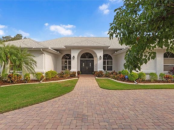 Perfectly situated on a PREMIUM half-acre lot overlooking the Golf Course at RIVER WILDERNESS in Parrish, this delightful property offers privacy and gorgeous views in every direction with no front or rear neighbors. Driving up, a wide circular paver drive sets the tone to present the home's timeless curb appeal and welcoming double-door entry. Step inside and the wonderful flowing plan offers spacious living areas and walls of disappearing sliders to bring the outdoors in and showcase the classic Florida pool and lanai. The heart of the home, a huge Great-room and casual dining area center's around the updated Kitchen featuring painted wood cabinetry, stainless appliances, granite counters and fun bar seating that invites guests to join in! With over 2600sf of living space, this well-built 3BD/3BH home features a split bedroom plan, with separate guest wing, and a private over-sized Master Suite. Glowing with both soft natural lighting and a sparkling crystal chandelier, the stunning Master Bath was recently renovated to include a huge double walk-in shower, free-standing soaking tub, dual vanities and double walk-in closets. With its miles of winding roads, unique custom-built homes and access to the Manatee River, the community of River Wilderness Golf and Country Club offers residents a distinctive choice seldom found in today's newer high-density subdivisions.