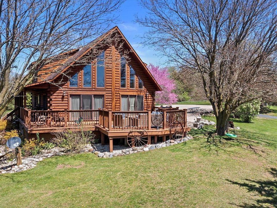 Welcome to your dream home! This modern log home built in 2000, boasts 3 bedrooms, 2 baths, and an expansive 2010 square feet of living space on a sprawling 9.75-acre lot. With Peterson Creek meandering through the back and a partially wooded landscape, tranquility awaits at every turn. Enjoy the convenience of a 2-car garage plus a 30' by 40' pole barn for all your storage needs. Inside, hardwood floors grace the main level, which features a master suite, main level laundry, and soaring floor-to-ceiling windows offering breathtaking views. The walk-out lower level and wrap-around deck provide seamless indoor-outdoor living, making this home a retreat for those seeking both luxury and nature's embrace. Schedule a showing today!