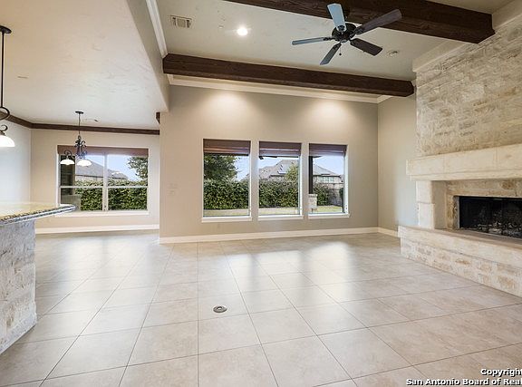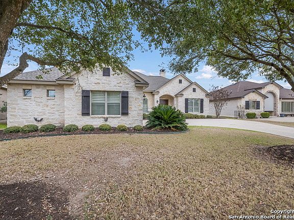 ~Gorgeous single story home in Fair Oaks Ranch~Spacious living room w/porcelain tile floors, stone fireplace, wood-beamed ceilings~Chef's kitchen w/granite counters, custom cabinetry, gas cooktop, Bosch appliances~Master suite has a large walk-in closet, backyard views~Master bath w/double vanity areas, jetted tub, walk-in shower~Guest suite w/full bath~4th BR makes a great office~Covered flagstone patio offers another space for entertaining~HOA maintains front yard~Fair Oaks Ranch Country Club available to join~