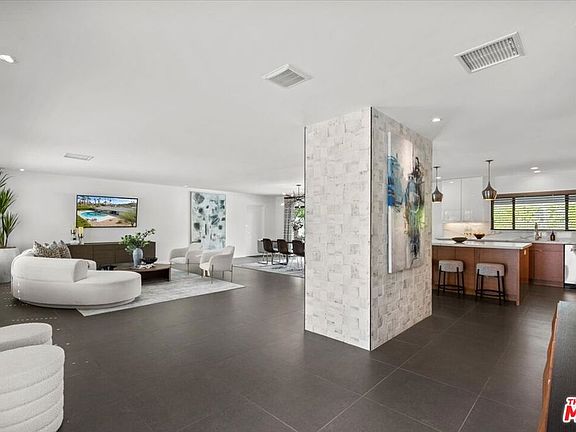 Stunning and relaxed South Palm Springs retreat . Unique opportunity to own this meticulously recently renovated Mid Century home in the peaceful Los Compadres neighborhood. Located on an expansive corner lot, with room to add casita/ADU or RV pad. Features an open flowing layout with plenty of natural light that lends itself to the relaxing indoor / outdoor desert lifestyle. Beautiful modern kitchen perfect for entertaining. Beautiful tiled floors and stylishly curated custom high end finishes throughout. Living space opens on to your completely private oasis backyard with mountain views for the indoor / outdoor lifestyle. A stunning kidney shaped pool, covered patio , fire-pit and built in BBQ round off this meticulously maintained and expansive backyard. There is a 3 car garage with epoxy floors and built in storage. You own the land, so no HOA. This home is not a STR, but could be a very high yielding property. At the time of listing, Los Compadres remains below the STR neighborhood cap. Buyer to do own due diligence. Take advantage of this unique opportunity to own this beautifully recently renovated home oasis on fee land in the highly desirable South Palm Springs minutes away from downtown, shopping, trails, Demuth Park and PS Airport.