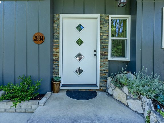 Wonderful mid-century modern style home located on a large corner lot in Silver Meadows neighborhood. This unique home features a spacious open floor plan, floor to ceiling windows, two fireplaces and vaulted wood ceilings. The living extends outside to the covered patio, hot tub, fire pit, garden area and the charming multi=use storage building.