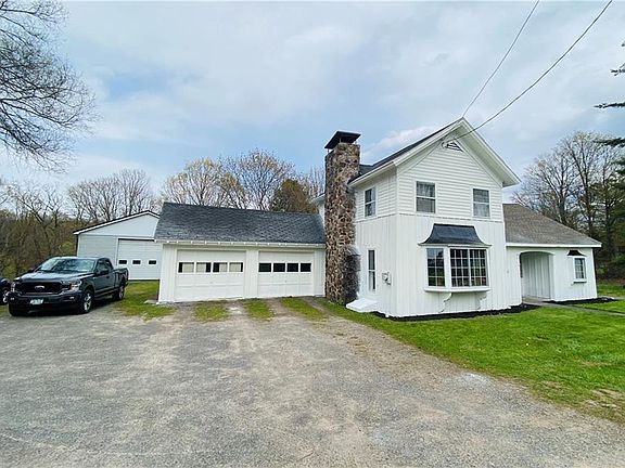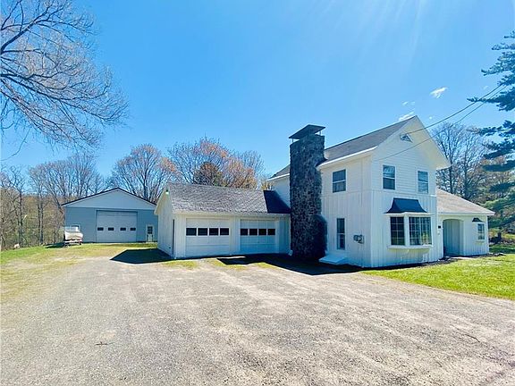 Charming and beautifully maintained farmhouse style 3 BED, 2 FULL Bath home. Fresh exterior paint, new sliding interior barn doors, built in shelving and gorgeous wooden beams add rustic charm, fireplace, large and bright kitchen area, plenty of space and storage with an attached 2 car garage featuring shelving and garage door openers, as well as a 30 x 40 pole barn with heat, 100 amp electric and water. Enjoy the large back yard with fire pit overlooking the little salmon river!