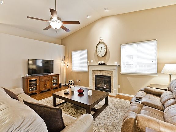 Desirable Single Level. Great room floor-plan, Perfect for entertaining! Vaulted ceilings, granite countertops, island & walk-in pantry. Formal dining, upgraded engineered flooring & gas fireplace. Large master suite w/soak tub & walk-in closet. Extensive pavers, spacious outdoor living. Raised garden beds & large shed. Professionally landscaped fenced yard w/sprinklers. 3 Car-Garage. Easy access to I-5, hospital, shopping & schools!