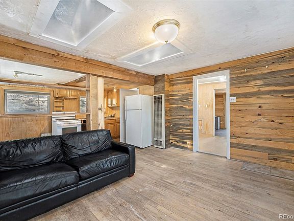 Your own little private compound close in. Just needs a little TLC to make this an adorable home or an excellent rental. Featuring wood floors, beetle kill wood paneling and high ceilings with two skylights. The property sits on a larger lot and is fenced affording a nice private area to hang out and enjoy the beautiful Colorado days. There is a large oversized 1 car garage that does need the garage door. Currently it is enclosed. Plenty of area for your car and large space for a workshop. Plus another storage area next to the home. Many possibilities. Close to all the amenities and Elk Meadow Open Space Park.