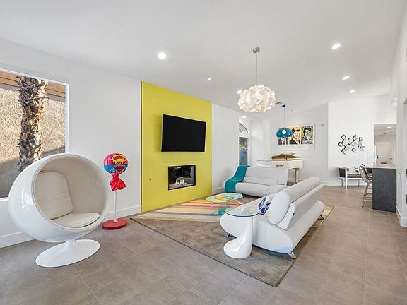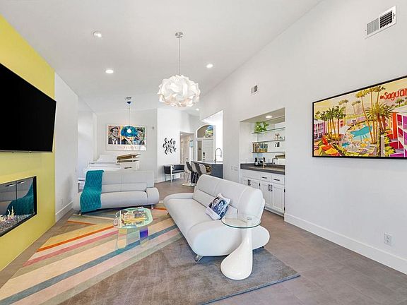 STVR OPPORTUNITY! Sold turn key furnished. BRAND NEW STUNNING ART DECO REMODEL! Single story villa with a fun pop art vibe! Open floor plan with an eat in kitchen, separate bar area, fireplace in living room. 3 bedrooms and 2 full bathrooms with an in house laundry room. Offered furnished so you can walk right in and start enjoying it. Beautiful views from the covered patio of the golf course, plenty of room to expand and build a pool. Great side yard for pets or build a private spa area. Located at the Desert Princess resort offering an affordable 27 hole PGA championship golf course, 34 swimming pools, tennis and pickleball courts, a health and fitness center, restaurant and so much more! Just minutes to shopping, casinos, international airport, museums, restaurants, and 2 hour drive from Los Angeles, San Diego and Orange County metro areas. Great community to live in full time or simply to have as an investment. STVR allowed with 3 night minimum. Furnished down to the silverware, all brand new. Conventional loans OK. All information deemed reliable but not guaranteed.