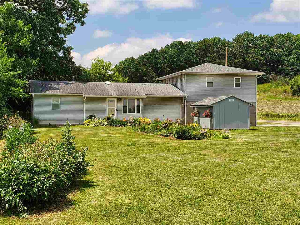 Open Sept 8 from 12-2. Updated and ready for you! Dual heating system, gas forced air & wood burner. Heated 2 car garage with 1 car door opening and 14x9 storage room. Totally insulated & finished nicely. Interior of home has gorgeous plastered walls, freshly painted, and trimmed in oak. Newer solid 3/4 oak floors in kitchen, living, and dining rooms. Oak cabinets with hard surface counter tops in kitchen . Main level laundry. Full updated bath. Main level master bedroom, 2 large bedrooms upstairs along with den or small 4th bedroom (no closet). New water heater. Nice corner lot. Approx .34 acre lot. Deep 250' private well. Septic in front yard and recently pumped. Natural gas fireplace and wood burner. Water softener owned and remains. 4 security cameras and monitor stays. Home wired for whole house gas generator. Generator does not stay. Appliances stay except washer/dryer. Access to crawlspace in storage room off garage where the well holding tank is. Cement patio off kitchen.