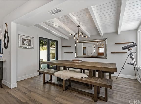A walk in the park and literally to TOW Elementary School! This is a one of a kind exceptional estate property in Top of the World with Saddleback views, secluded within a private wraparound corner lot with every sq inch of inside and outside space accounted for. Two story, 2 car garage with electric car charger, 5 bedrooms plus 3 full bathrooms, surround sound, 3 fireplaces, water purification for the whole house plus purified drinking water, air conditioning and so much more. Desirable open living floor plan that flows inside and out. Great yard in the front or large turf in the rear with built in barbecue island, el fresco dining, and outdoor fireplace. Just 5 houses away from TOW Elementary and 5 mins from Laguna Beaches, shops, restaurants, etc. All Italian stone wood like tile floors throughout the 1st level with high grade wood like vinyl upstairs throughout. Cathedral beamed ceilings in upstairs living room with gas fireplace and outdoor deck, plus formal downstairs living room with gas fireplace and open doors to rear outdoor living.