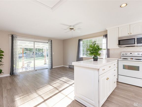 Warm, inviting 3 bed/2.5 bath split-level home features open layout kitchen/dining/living room with fireplace. Beautiful, large, covered patio and fully fenced backyard & storage shed . Large family room and 1/2 bath downstairs. Upstairs features 3 bedrooms, including master with his/her closets and ensuite bathroom along with 2 other bedrooms and 1 full bathroom. 2 car garage and large 1/4 acre lot with room to expand. Quiet neighborhood with easy access to ferry, shopping, base, and CK School.