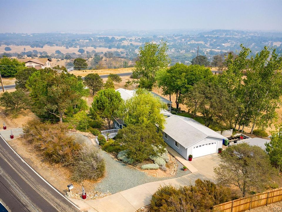 Make a move to the foothills, wonderful setting on 3.0 usable acres with lovely foothill views. Well designed floor plan for this 1999 Silver crest manufactured home on permanent foundation with 3 bedrooms plus a den or 4th bedroom and 2.5 baths. Beautiful wood floors and nice touches throughout this spacious single level home. Spacious master suite separate from the guest bedrooms with walk in closet and nice bath with separate tub & shower and double sinks. Family room open to the kitchen with island and a gas range. Separate living and dining room area with cozy free standing gas log fireplace. Convenient inside laundry with outside access and half bath. Relax on the covered front porch and enjoy the peaceful setting. Entertain family and friends for BBQ's on the covered back deck and enjoy the built in hot tub. Detached 32 x 22 garage with 11 1/2 x 22 shop with half bath. Additional garden shed, chicken coop and 2 car metal car port. Circular driveway and plenty of parking area for your boat or RV. Fenced raised garden beds with drip irrigation and just the right amount of lawn area. High speed internet for families working from home and distance learning. Room for everyone to spread out here and enjoy a peaceful and relaxed lifestyle. Near 3 lakes and recreation