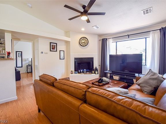 Fantastic location on this remodeled 2 bedroom condo close to Harry Reid Airport, Sunset park and the Las Vegas Strip! This condo in a gated community offers a full size 2 car garage, bright and open floorplan with high ceilings, cozy fireplace, and separate dinning area. This unit has a spacious primary and secondary bedroom that are separated by the large living room. A definite must see property for both homeowners and investors.