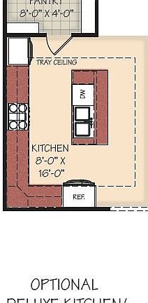 The deluxe kitchen is a chef’s dream, featuring a vented hood, working island, and a generous walk-in pantry for ample storage.