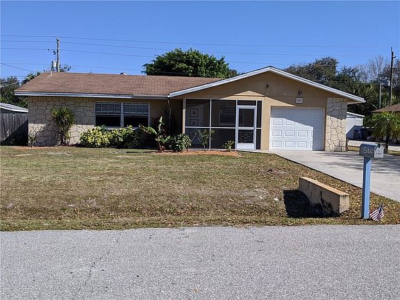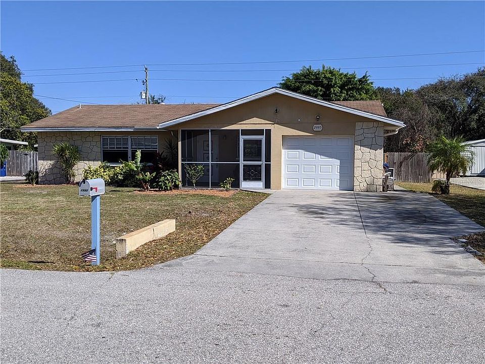 Quaint home in a quiet neighborhood with no through traffic. This two bedroom two bath home with a split floor plan includes a bonus room that has a closet and can be used as a dining room, office or a third bedroom if enclosed. The open kitchen is spacious with ample cabinets, granite counter tops, and room for a dinette or moveavable island. The Master bedroom leads to the Florida sun room and then out to the beautiful fenced back yard to enjoy the mature landscaping and wildlife. The second bedroom has been newly recarpeted with his and hers closets. The second full bath has been remodeled with a new vanity and tiled shower. Storage is plentiful throughout the home. The one car gargage also has plenty of cabinets and shelving which compliments the additional storage space provided by the backyard shed. The fenced yard is perfect for grilling & entertaining and enjoying the Florida sunshine. Located for convienent access to shopping, restaurants and the many beaches that this area has to offer.