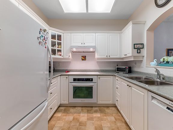 55+ Strata - This 2 bed/2 full bath 1049 sqft home is South facing towards the courtyard, immaculately maintained, 2 parking & LG locker. Owners have updated washer/dryer/ all kitchen appliances, & carpets. Primary bedroom is big & easily fitting a king with room to spare + walk in closet & ensuite bath with tub. 2nd bathroom has stand up shower with grab bar. Large kitchen has plenty of storage & is open to Living/dining room. Hall closet includes a pantry! Cute balcony faces SW manicured courtyard. Well maintained building incl. professional wood shop, games room, reading room, grand kids craft room, pool & hot tub. Rentals allowed. 1 dog or 1 cat (See Virtual Tour) Open House Saturday Feb 11th 2-4pm