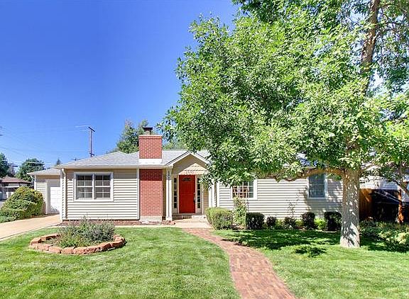 What a find! Cute updated 3 bedroom, 2 bath, Cottage on Huge Corner Lot with Fruit Trees and Flowers,Lots of Hardwoods, tile, Newer Roof, almost all Newer Pella Windows, Newer Kitchen with allAppliances and dining area open to family room, Newer Tiled master bath, good sized master bedroomwith Walk in closet, Original Arch and wall Tile in full hall bath, Charming Original telephone Alcove,behind free-standing bookshelves, Classic arched sunny living room, Fresh WindowCoverings throughout, laundry with sink, water softener, covered patio, 1 car attached garage, UtilityShed, sprinkler, evaporative cooler, crawl space under most of house, convenient walk to EisenhowerPark, Denver Library, movie theater, King Sooper's shopping square, Starbucks, restaurants, Y.i blk tobus, 2 miles to light rail, Hurry on this one.