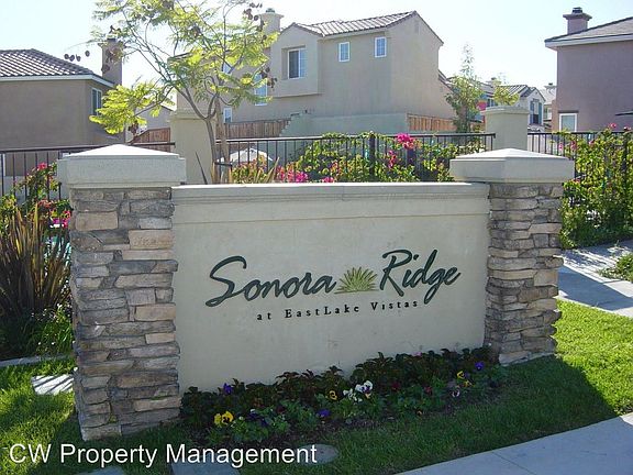 3 bedroom 2.5 bath house in great neighborhood of Eastlake Vistas - AVAILABLE Aug 15TH. 3 bedroom 2.5 bath home in private community of Sonora Ridge located in Eastlake. Next to Otay Lakes and Mountain Hawk Park. Tile entry and kitchen floors. Granite counter tops and new cabinets. Surround sound downstairs, private backyard with bbq and patio area. Two car garage with plenty of storage space. Washer/Dryer and Refrigerator will stay with the property. Large master bedroom with jacuzzi size tub. Community has private pool and jacuzzi area plus tenants have exclusive use to The Woods and Creekside Clubhouses. Pets negotiable with owners approval. Great schools and only 25 minutes away from both military bases of Coronado and 32nd Street. (RLNE2204625)