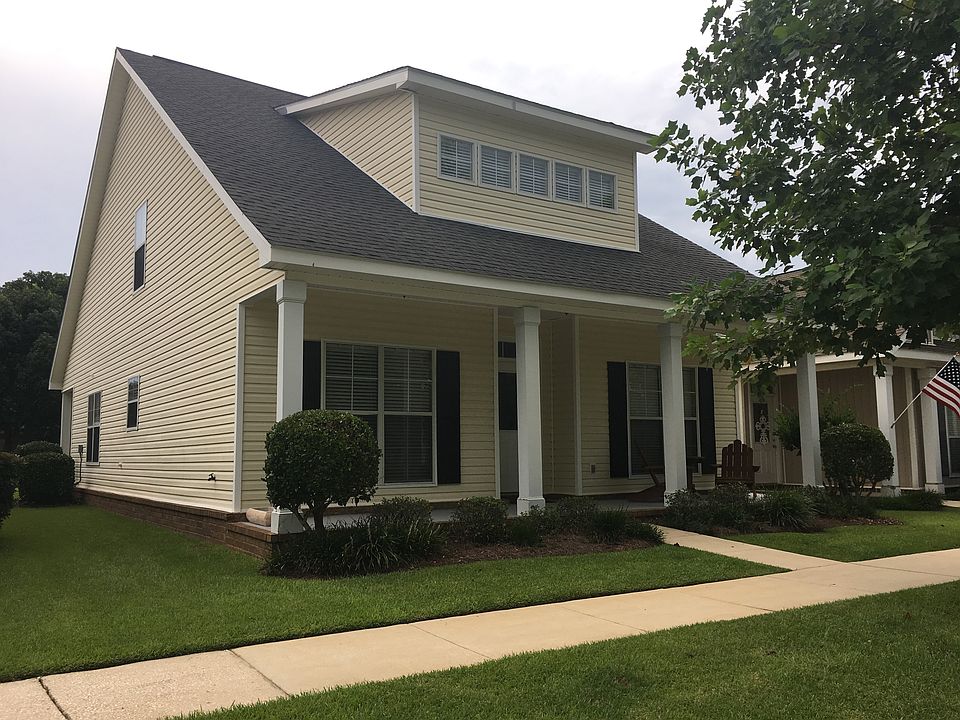 Relax on the front porch in this quiet Historic Malbis neighborhood. Close to shopping, medical centers and the interstate. This 2103 square foot 3 bedroom 2 ½ bath home has almost 1300 square feet of living area on the main level. Two large bedrooms, a full bath with two separate vanities, a study area and tons of storage are upstairs. Enjoy the gas fireplace and a large separate dining room made cozy with 4 inch wide hardwood floors, a chair rail, 9 foot ceilings and crown molding. The large kitchen has ceramic tile floors and a 3' x 5' center island with storage, electric outlet and an 8" overhang for pulling up the stools and comfortable eating. The breakfast nook is large enough for a big table and plenty of chairs. A half bath is down stairs so people don't have to go upstairs or into the master bathroom. The master has a large, deep tub, separate shower, double vanities and two walk-in closets. Two parking spaces and a storage room are behind the home. It is in the highly ranked Rockwell elementary and Spanish Fort high school districts. At&t provides high speed internet. All utilities are underground. The tree lined streets help keep the area cool in our hot summer. Enjoy the large fenced playground only blocks away. This home is very well maintained and ready for you to move in.