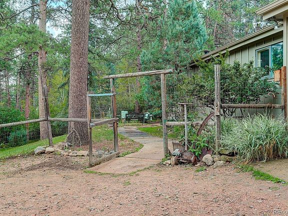 Own your own piece of charming Evergreen! Welcome to this 1950's ranch, no stairs, with abounding personality. This 3 bedroom and 2 bath even has a primary en suite bathroom. Large living area with numerous windows taking in all the natural light complete with a stonewall gas fireplace. Dining area and spacious kitchen with gas stove. Two back rooms offer endless storage before stepping into your Greenhouse. Step outside of the primary bedrooms French doors to your own private porch and have your morning coffee with the Hummingbirds. Then take a stroll through your endless garden pathways and take a seat on one of the numerous park benches and watch the mother and baby dear frolic in the front yard. Take a moment to jot down your thoughts in the free standing "jail", which would make a great small art studio. There is also a barn with electricity and a office area with wooden floor. Pervious owners were avid gardeners so there are many variety of trees along with many naturalized. Home has new roof and Hardy board siding. Huge garage with even more storage. Furnace is less than 10 years old and the hard plumbed gas heater stays so you can heat the green house. Roof installed 2022 comes with a transferable warranty. Bring your gas grill as the primary porch is hard plumbed for one! Electric boxes updated recently. Storm windows for doors and kitchen in the garage. New kitchen disposal and water line from well into the home. Correct legal with all three lots is - PIN 51-164-03-001 SECTION 16 TOWNSHIP 05 RANGE 71 QTR SE SUBDIVISIONCD 233800 SUBDIVISIONNAME EVERGREEN PARK ESTATES UNIT 7 BLOCK LOT 0088 SIZE: 31155 TRACT VALUE: .715