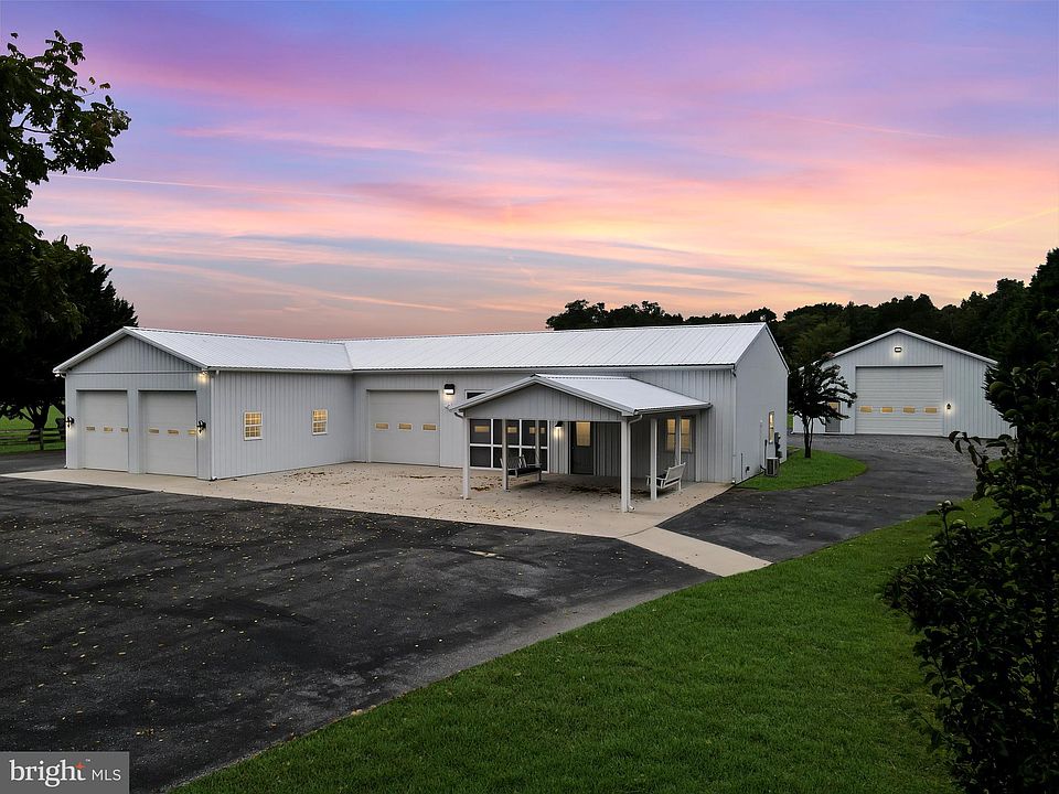 Welcome to this unique and versatile property, perfect for both business and leisure, situated on 5.39 sprawling acres. The front of the home features a spacious garage and workshop area, fully equipped with four bay doors, a 2-post car lift, a full bathroom, laundry facilities, an office space, and a built-in bar—ideal for running a business, pursuing hobbies, or accommodating a car collection. In the back, the residential portion of the home offers a cozy and comfortable living space with two bedrooms, a combined living room and kitchen area, and a well-appointed bathroom. The layout is designed for convenience and privacy, making it easy to transition from work to relaxation. Outside, the property is equally impressive with a large pole building and four additional storage buildings/sheds, providing ample space for equipment, storage, or additional workspace. The expansive circular driveway ensures easy access and plenty of parking. Enjoy the outdoors on the covered front patio, complete with charming porch swings, or retreat to the rear covered patio for some quiet time. The property also includes an outdoor shower, perfect for rinsing off after a long day of work or play. This property is a rare find, offering endless possibilities for both personal and professional use. Property being sold AS-IS, WHERE-IS with no guarantees or warranties.