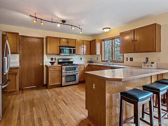 Ideally located in convenient and desirable North Evergreen, this is the one. Just minutes from all the conveniences including shopping, parks and trails, the lake, schools and I-70, and yet tucked in with a spacious fenced yard. The floor plan works so well with all 3 bedrooms close by on the upper level including a master suite. The open main level features living, dining and a large kitchen with counter space galore. Step out to the deck for grilling or relaxing while enjoying the views and the quaking aspen trees. You'll love the convenience of the main level laundry and attached garage, too. The lower walk-out level features an open spacious rec room with a cozy gas fireplace and a full bathroom - ideal for those extra guests that will want to visit you now that you live in Evergreen. With available high-speed cable internet, central a/c, public utilities, a well-maintained road and easy access, this home has it all!