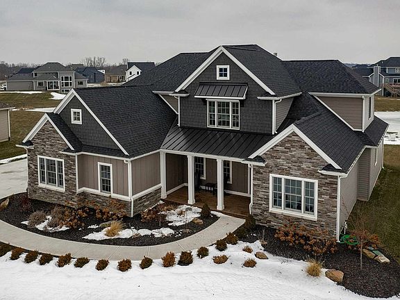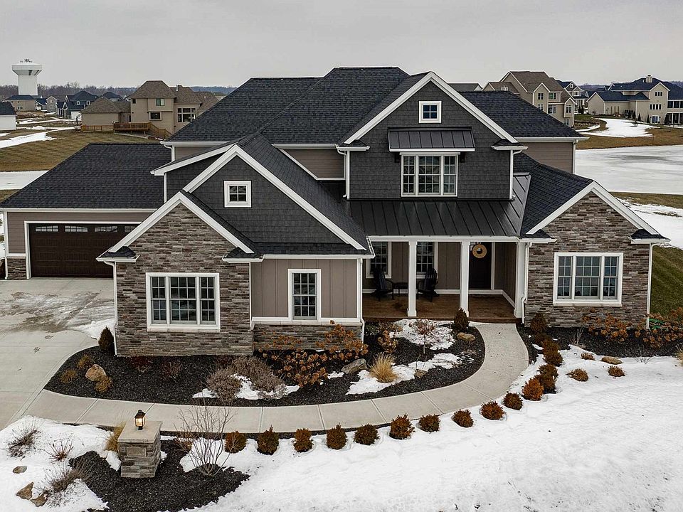 This gorgeous 5 bedroom, 5.5 bath home is on a half acre pond lot in the coveted Grey Oaks neighborhood. The open concept boasts hardwood floors as you enter. A custom dining area & chandelier greet you on the left, to your right is a spacious den & full bathroom. As you pass through the lg living area w a magnificent view of the pond, you'll appreciate the warmth and charm of the beautiful fireplace. Next, in the chef's kitchen, there are expansive granite countertops, a farmer's sink, double ovens, a walk-in pantry, & an eat-in area. Pass through the well-organized mudroom into a spacious 4 car garage. The master bedroom suite includes double sinks, lg custom tiled walk-in shower w rain shower-head, lg soaker tub, & a custom closet w 2 layers of storage. Upstairs you'll find 1 on-suite bedroom & 2 bedrooms w a Jack & Jill bath. Utilize the lg ent/ play/storage area for your convenience and fun! Downstairs enjoy the fully plumbed wet bar & uniquely polished concrete floor, a lg rec area with custom media storage, bedroom & bathroom, half bath, & 2 additional storage areas. The outdoor living space incl a 16x16 stone paver patio, & a custom-built fire pit overlooking the pond. The perfect place for guests to gather! A full irrigation system will keep the yard, landscape, & flower beds looking great! Enjoy this unique, spacious, & beautiful home w access to the neighborhood pool, pond maintenance, snow removal, & SWACS.