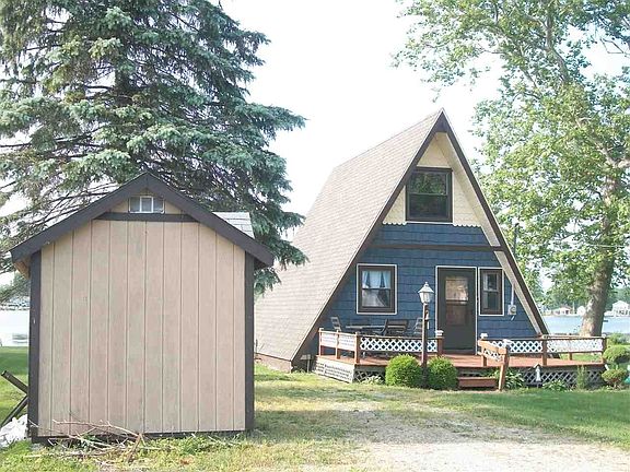 Such a dollhouse! This 2 bedroom A-Frame cottage is situated on 63 ft. of lakefront at Nyona Lake. It has a brand new roof and siding. Two new peers and a new tiled shower in bath. Has 8 x 10 shed as well. Enjoy the outdoors with decks on both the front and rear of home. Lots of windows (some never) to take in the gorgeous views. Don't let the size fool you, this cottage sleeps several. Play with the kids at your own private little sand beach or hang at the stone fire pit roasting marshmallows. You can't go wrong making memories for years to come.