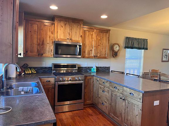 This charming single level home is in the desirable Oakview neighborhood on a quiet street, close to schools and shopping. It has been extremely well taken care of. The kitchen has all Stainless steel appliances, beautiful oak cabinets and hardwood floors, W/D and refrigerator all included. All bedrooms are light and bright with shelving in the closets. Main bedroom and bath is very large with a walk in closet, large walk in shower and double sinks with tile backsplash. Gas fireplace in the living room for those cozy winter nights. 2 car attached garage and all shelving is included. Easy front yard landscaping with sprinklers, Backyard has a nice Trex deck and Storage unit the rest of the area is open to your creativity. This home is move in ready in a great Bend location.