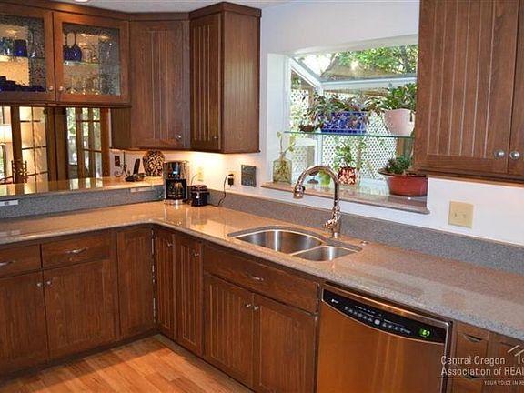 Wonderful park-like corner lot fully fenced brimming with mature landscaping and gorgeous perennials, raised vegetable beds, serene shaded patio, dog kennel and room for your RV! Remodeled kitchen boasts granite surfaces, pullout drawers, GE profile stainless appliances, eating bar, richly stained cabinetry and loads of storage space. French doors to a backyard oasis. Skylights for loads of natural light. 5-year new roof and new hot water tank. Minutes from all the amenities of Pine Nursery Park!