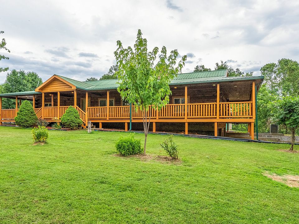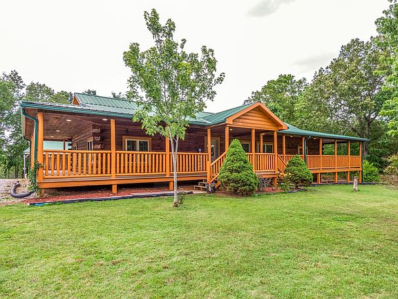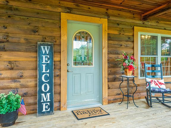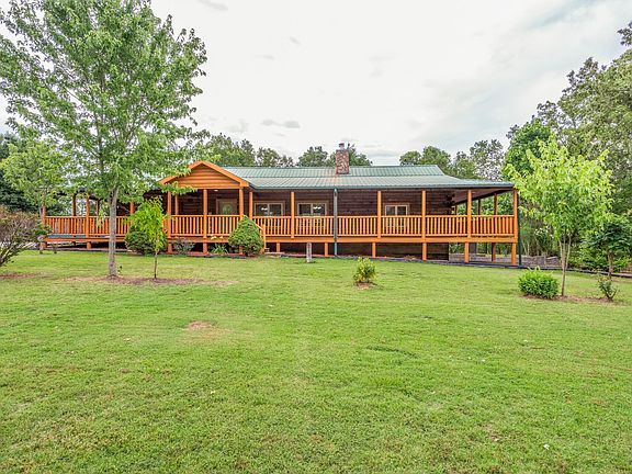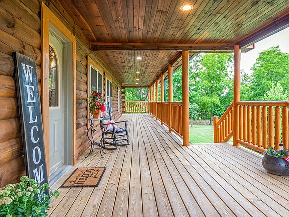 DREAM HOUSE...Beautiful Custom Built 8 in. Pine Log Home w/wrap around porch, inset lights on 9.16 acres. Beautiful open concept, stone wall gas fireplace, solid cedar mantel, & wood flooring. Large open kitchen, custom Hickory cabinets, porcelain tile floor, titling double pane windows throughout & new window blinds. Recently installed handicap accessible showers & chairlift on winding staircase. Full basement with wood burning stove & cellar room. Huge 30x60 Pole bldg. w/sliding door & covered concrete porch. Lg. laundry room w/ 1/4 bath & cabinets. A separate septic with electric & water on front of property ready for manufactured home or build your own. Beautiful orchard; pecan &, apple trees, raspberry, grapes, & blueberries are here!. New HVAC July 2023! Must See........