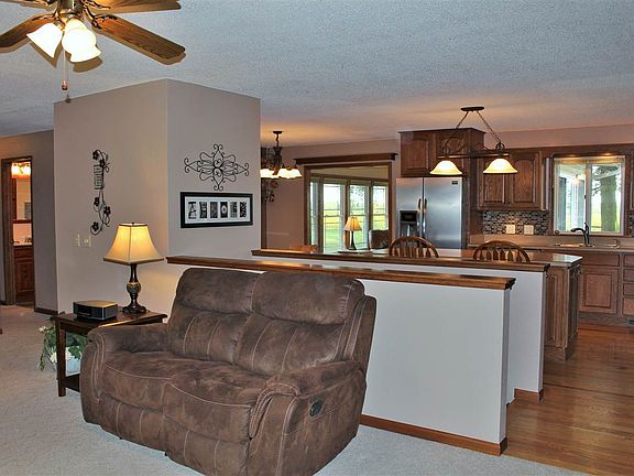 Beautiful 3 bedroom ranch on over 1 acre! This home is a showstopper w/ many updates including new carpet. The main floor has an open floor plan w/ views from the large living room through the kitchen and out to the private back yard. It also boasts a large kitchen w/ many cabinets plus island, informal dining room that opens into a cozy family room complete w/ many windows and a stone gas log fireplace. Down the hallway, you will find 3 large bedrooms and a completely remodeled bathroom. The finished basement adds ads a non-conforming bedroom & office, a spacious rec room w/ gas log fireplace, a laundry room, a storage room AND an additional fully tiled 3/4 bathroom. Outside w/ access from the family room, you will find a 14 x 10 low maintenance deck that takes you out to the stunning costume stone patio w/ fire-pit. The garage is an OVER SIZED 2 car w/ an attached shop perfect for your lawn and garden tractor & tools.