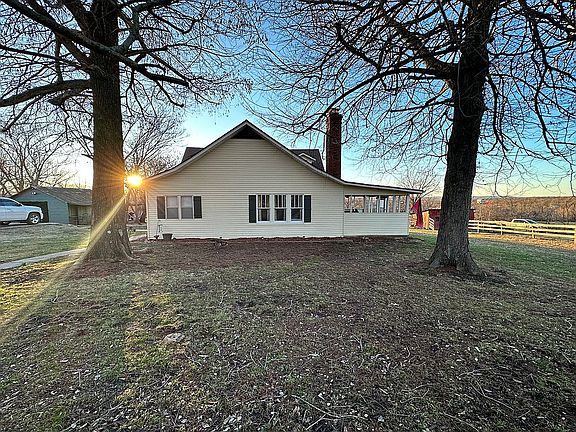 Newly updated farm style home on 4 completely fenced, cleared acres! Beautiful setting, 2 small barns, and right off paved road close to town but outside city limits! Possible 4th bedroom and a den.