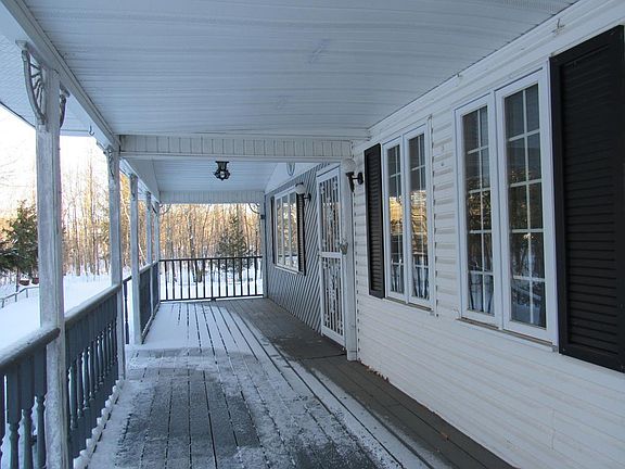 Make this Home Yours Today! This ranch home sits of the road and offers 8.1 acres of wooded property. The kitchen has plenty of storage and has open floor plan overlooking the dining room and living room. Laundry/mud room as you enter through the garage. Master suite with full bathroom with 2nd bedroom across the wide hallway. Relax in the sunroom or covert to 3rd bedroom. Nice covered front porch and rear deck. 2 car attached garage, 2 car detached garage with loft and storage sheds. Nice horseshoe shaped paved driveway to house with separate driveway to the 2nd garage. New furnace this month. Basement could be refinished for extra living square footage. Home being sold as-is. Old school bus to remain with house.