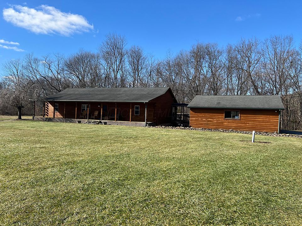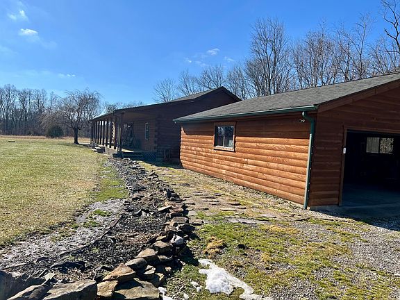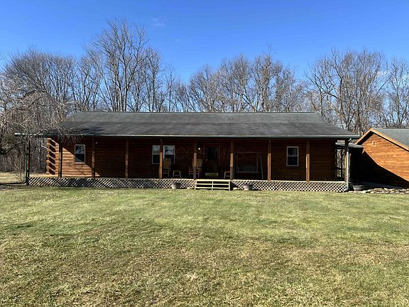 Escape to this beautiful log home on 3 separate parcels totaling 20.32 acres. This 3-bedroom, 3-bath retreat features hardwood floors throughout. The spacious kitchen includes a breakfast bar, pantry, and appliances. Relax in the inviting living room with a gas fireplace, or enjoy the expansive family room that opens to a rear deck with a therapeutic hot tub. The 60-ft covered front porch offers tranquil views, perfect for unwinding. The property also includes a 2.5-car garage, a 3 car garage and a pole barn all with electric and LED lighting (24x32 and 30x48) and a generlink plug for a portable generator. Mostly wooded acreage with ATV trails, a stocked pond, and a camper site with electric hookup. A motorized gate ensures privacy and security. Don't miss out—schedule your showing today!