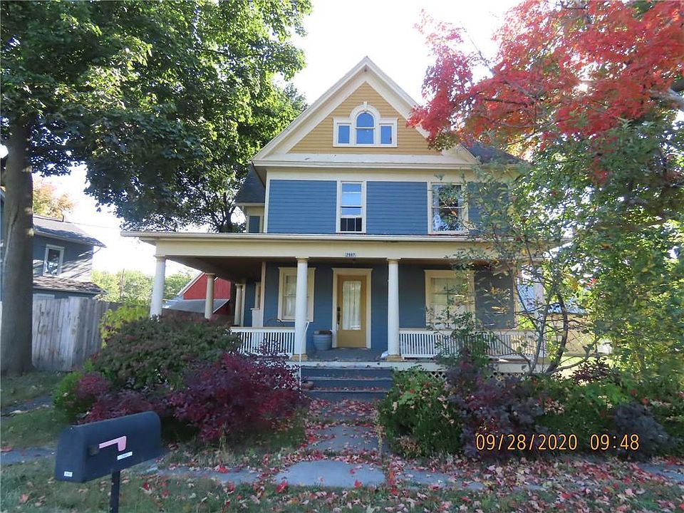 Stately colonial home with large front porch, large rooms throughout interior with many hardwood floors and solid woodwork. Double living room with formal dining room. Four large bedrooms on second floor with full bath. Carriage house has 2 garage doors and a loft.