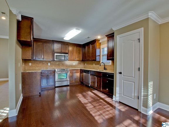 Open Saturday from 2pm - 4pm. Lovely 3 bedroom brick home that is loaded with custom design and detail throughout. Home offers hardwood floors, crown molding, formal dining room, gas log fireplace, custom cabinetry, granite, stainless appliances, and a sprinkler system. Enjoy the covered patio and the beautiful treeline in the backyard for privacy. Home is located 12 miles or a 25 minute drive to Redstone Arsenal and is in a close proximity to schools and shopping. Must see!