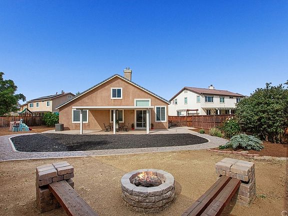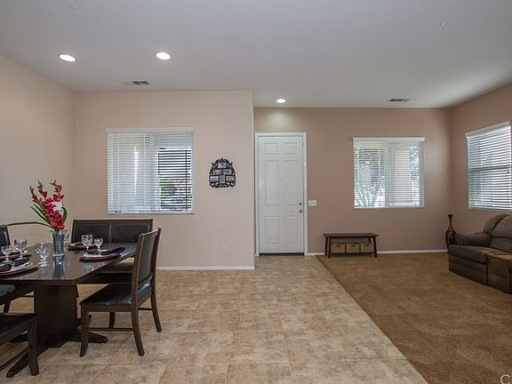 Spacious turnkey 1 story living w/bonus 2nd floor loft & guest suite! This home has a fantastic 2 level floor plan w/large private backyard perfect for gatherings & indoor/outdoor entertaining. Plenty of room to add a pool &/or outdoor kitchen/BBQ. Gather around the fire pit for some s'mores or enjoy a meal outside under your oversized covered patio w/ceiling fan. The "water bill-friendly" landscaping in a backyard of this size will SAVE $$. Large side yards w/fig & lime trees on 1 side & a perfect space for vegetable/flower garden right outside the kitchen windows on the other side. From the entry you will be greeted by lovely formal living and dining rooms that lead to the dramatic vaulted ceilings of the kitchen & family rooms. The bright & open kitchen features tons of counter space, granite island w/breakfast bar, plenty of storage & built-in desk area. It flows freely to the family room where you can enjoy the beautiful fireplace, entertainment niche & views of the backyard space. The master suite includes a large walk-in closet, dual vanity & an oversized garden soaking tub. Additionally, the 1st floor also includes, 2 more bedrooms, full bathroom & indoor laundry room w/extra storage. The 2nd story could be your teen's dream suite, a guest suite, private home office suite, game room, etc... so many possibilities! Don't miss out on this great find in an up and coming area of Menifee. Close access to new shops & entertainment. **CHECK OUT THE VIRTUAL TOUR**