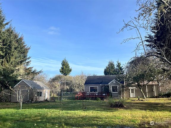 Well maintained cozy 2 bedroom , 1 bath home with 856 SQ FT . The home is located in Grayland on Approximately 1/2 Acre. Built in 1956 with some very nice recent remodeling. Kitchen has some newer appliances & a sunny dining area. Living room has laminate floors & lots of natural light . Reconditioned bathtub/shower. Nice size bedrooms. 2 car garage with workshop area and storage area. Partially fenced yard. with additional outbuilding & fruit trees. New roof in 2021. Primary or secondary home awaits you, tucked in the Grayland Area near cranberry farms & close to a beach approach. Come & enjoy all that Grayland area has to offer. Easy living, beach combing, clamming , fishing and just relaxing in your new home in a pristine setting.