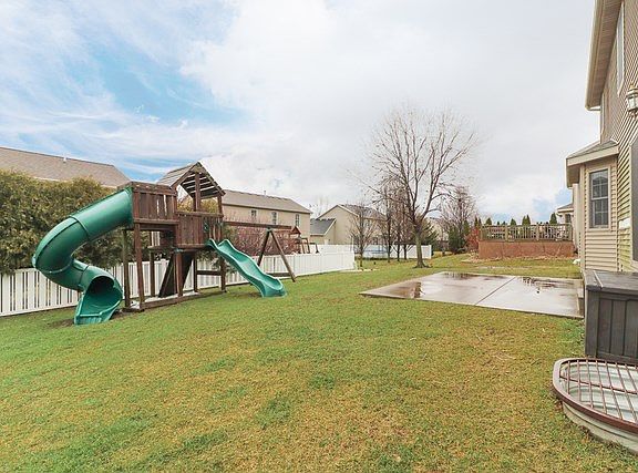 Beautifully maintained, spacious 5 bedroom 3.5 bath home in Eagles Landing. Home has brand new carpet and fresh paint throughout all levels of home. Main floor features large, open concept kitchen, dining area, and living room with fireplace, formal dining room, and laundry room. Four bedrooms with large closets upstairs. Master suite features walk-in closet, vaulted ceilings and large corner tub in ensuite bathroom. Finished basement features large family room, extra bedroom, and full bathroom. Three car garage and nice large backyard with swing set!