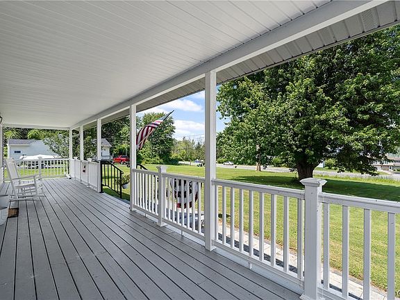 This elegant four-bedroom, two and a half bath Colonial home offers stunning access to Oneida Lake. The main level features a spacious living room, a formal dining room, and a modern eat-in kitchen with breakfast bar, stainless steel appliances and wonderful cabinetry. Upstairs, the owner's suite provides a private retreat with an ensuite bath, complemented by three additional bedrooms and a shared full bath. The outdoor area is perfect for relaxation, with a patio and in ground salt water pool with new sand filter ideal for gatherings and direct access to the lake for boating and fishing. Experience the perfect blend of classic charm and contemporary amenities in this lakeside gem. Updates include cost efficient solar, on demand hot water, theater room with projector, brand new central A/C. Canastota schools.