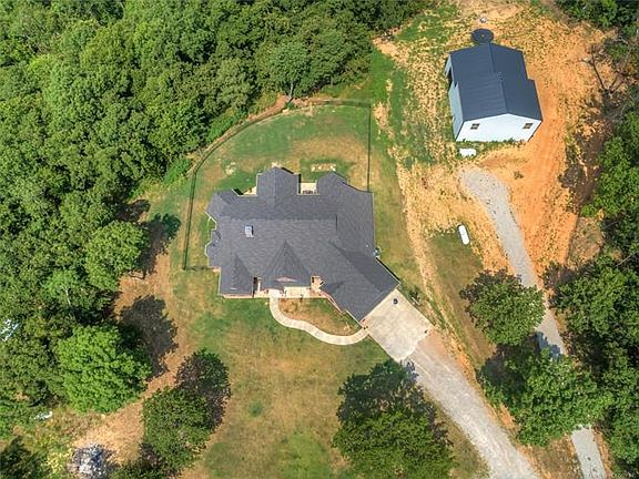 Incredible custom built hm situated on 5 wooded acres w/40x50 shop that has 1,000 sqft of living space upstrs. The hm boasts a grand entry way w/concrete flrs thruout. Formal dining rm & a gorgeous open kitchen w/all the space to entertain. The bedrms offer plenty of space & the hall bathrm feats 3 sinks! The master suite has access to outside patio & opens nicely to a large master bathrm & over-sized walk-in closet. You will enjoy the upstairs game rm & covered back patio. All the xtras you could want!