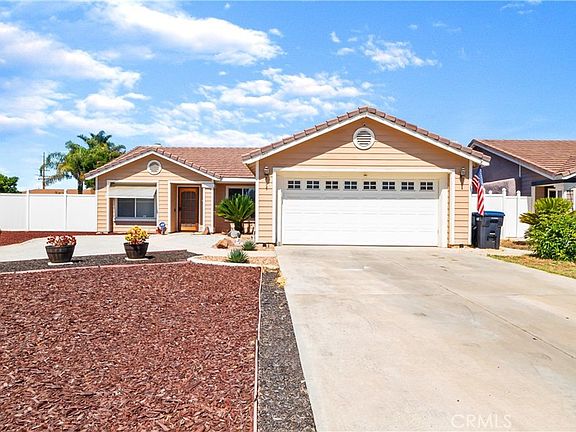 Lovely single-story home in desirable Menifee-a hidden treasure. This home has great curb appeal, a formal living and dining area, cozy family room and kitchen with a breakfast bar and nook area. The master bedroom has a shower/tub and dual sinks. There are two additional spacious bedrooms and space allocated for the washer/ dryer. There is a finished 2-car attached garage and ample storage space. This home is located on a substantial level pool-size + lot. The backyard has vinyl fencing and a brick wall. NO HOA. Located on a quiet street within walking distance of City Hall, police station, fire station, Evans Ranch Elementary (.05 miles) and Paloma High School (1.5 miles). Easy access to shopping and freeways. One of Menifee's Best Locations.