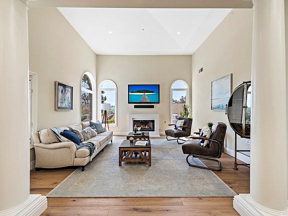 Welcome to this Exquisitely designed contemporary timeless Mediterranean estate where Elegance meets comfort surrounded by nature, majestic hills views & ocean breezes. This pristine Custom home nested in the exclusive community of Stoneridge Estates boasts 4 Beds + large loft, a grandma's separate retreat, 3.5 baths, and an Entertainers resort paradise backyard/tropical oasis with pebble tech pool & spa, covered cabana with BBQ and bar, large grassy areas all beautifully landscaped while enjoying the secludedness and privacy it offers. A stunning archway entry door & foyer w cathedral ceilings & skylights w plenty of natural light, Formal living & dining, courtyard, all accentuated w/gorgeous Hardwood Mediterranean Kerew French oak aged & smoked flooring. Remodeled chef's kitchen is accented by a beautiful oversized Carrara marble waterfall island & countertops, brand new Viking appliances, pantry & new fixtures. Family room w/entertainment media, fireplace, custom shelving and ceilings, separate eating nook adjacent to kitchen overlooking the amazing backyard. Spacious master suite upstairs has own balcony with endless mountain views and retreat with fireplace. Spa-like fully remodeled master bathroom w/ imported Carrara marble, freestanding tub w/ gorgeous views, bright open glass shower, brand new cabinets and quartz w/decorators accent stone. 2 bedrooms w/ own balconies, Jack & Jill remodeled bath, loft/office/bedroom overlooking foyer.