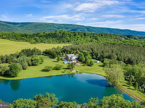 Welcome to your own private oasis and entertainers dream! This elegant brick country home sits on 36 acres with a 6+ acre stocked lake, swimming pool, grand wrap-around porches, extensive hardscaping, majestic mountain views, and professional landscaping that is sure to impress! Escape the busy city life and immerse yourself in the Blue Ridge Mountains just 1 hour west of Gainesville and only 95 miles to Washington, DC. Over $500K in recent upgrades/improvements - this home shows pride in ownership at the highest level! You are welcomed by a tree-lined circular driveway and grand porches that serve as impressive entertaining areas overlooking the meticulous landscaping and mountain/water views. The brick patios and grassy areas are designed with outdoor entertaining in mind, offering multiple fire pits with built-in seating, fields to play, outdoor cooking areas, waterside relaxation, and an abundance of year-round color from numerous perennials and deciduous trees. The home itself boasts 4 finished levels, an oversized 3 car garage, over 1,400 sq ft of covered porches, main level in-law suite, finished basement, spacious bedrooms, home office(s), and nearly 7,000 square feet of finished space. Recent key improvements include: 3 new high-efficiency HVAC systems, tankless water heater, finished 4th floor into a guest suite, finished 2nd story sunroom, created main level in-law suite (ADA compliant), updated kitchen w/additional cabinetry, new quartz counters, new appliances, and double-sided fireplace, extensive moldings/built-ins, updated bathrooms, new gas fireplaces, new swimming pool, decking, multiple patios and so much more! You are not just buying a home, but the wonderful lifestyle that comes with it! **See property videos in Virtual Tour link**