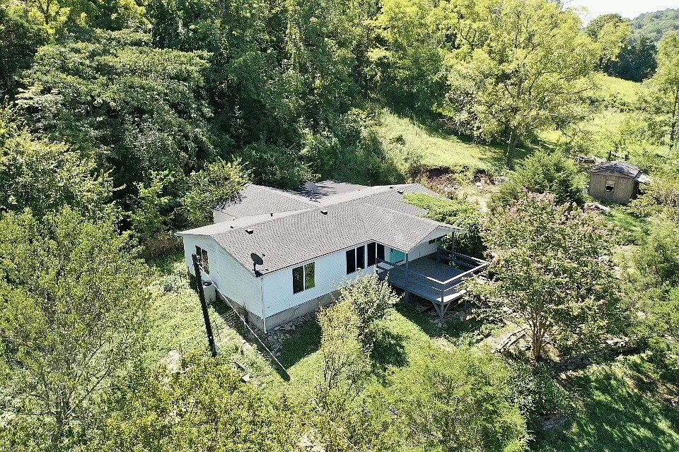 Super Private! Double wide mobile home on a permanent foundation with 5 acres! Open floor plan, unique features inside with beautiful wood and stacked stone. Nice tile in BOTH bathrooms, out buildings, covered front porch, lots of possibilities, solar panels to save you money on your electric bill. This property is located 2 1/2 miles from I-65, Call today for more details