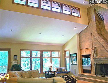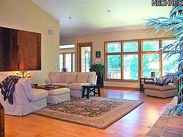 Spectacular 7450 sq.ft. home inspired by Frank Lloyd Wright on almost 3 acres.Has a 25-50ft creek and a 5ft waterfall.There are 3 level's,first floor, great room w/soaring ceilings,free wall fireplace and hardwood floors.Gourmet kitchen features custom cabinetry,stainless appliances,granite,hardwood and doors to 31x18 deck.First floor master w/glamour bath & huge closet.Spacious dining room w/hardwood,two half baths,front and rear staircases and large laundry.Upstairs an office with built-ins,fireplace and doors to a balcony.The lower level consists of rec roomw/wet bar, 2 bedrooms, a full and half bath. Full kitchen w/dining area. Excercise room w/steam room and laundry room.Detached 2400 sq ft garage plus attached 3 car garage-both heated. Exclude dinette light fixture on 1st floor, dinette fixture on LL & foyer fixture.