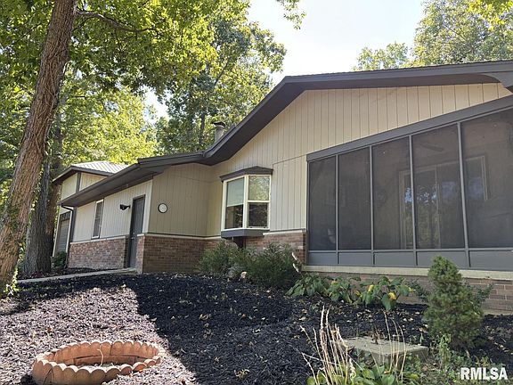 Wooded privacy highlights this 4 bedroom Ranch with walkout basement. Located on 1.68 acres, just a few minutes East of Rochester in the Tri-City school district. Easy access to Springfield, Decatur & Taylorville. Spacious eat-in kitchen features stainless appliances, gas range, granite counter-tops. The the living room the picture window highlights the scenic wooded view, & features built-ins for books & treasures. Hardwood floors continue throughout the main floor. There is a cozy screened porch off the living room. Primary bedroom suite features large closet, attached private bath with 4' walk-in shower. There are two potential bedrooms, workout rooms, offices, etc. in the lower level walk-out. Bsmt also has Family room, 1/2 bath, accress to hot tub room, storage & safe room. Outside living is delightfull with large covered patio space and surrounding woods. Attached 2 car garage for extra convenience. There is a detached storage building with much potential. If you are looking for a peaceful retreat this is your new home!