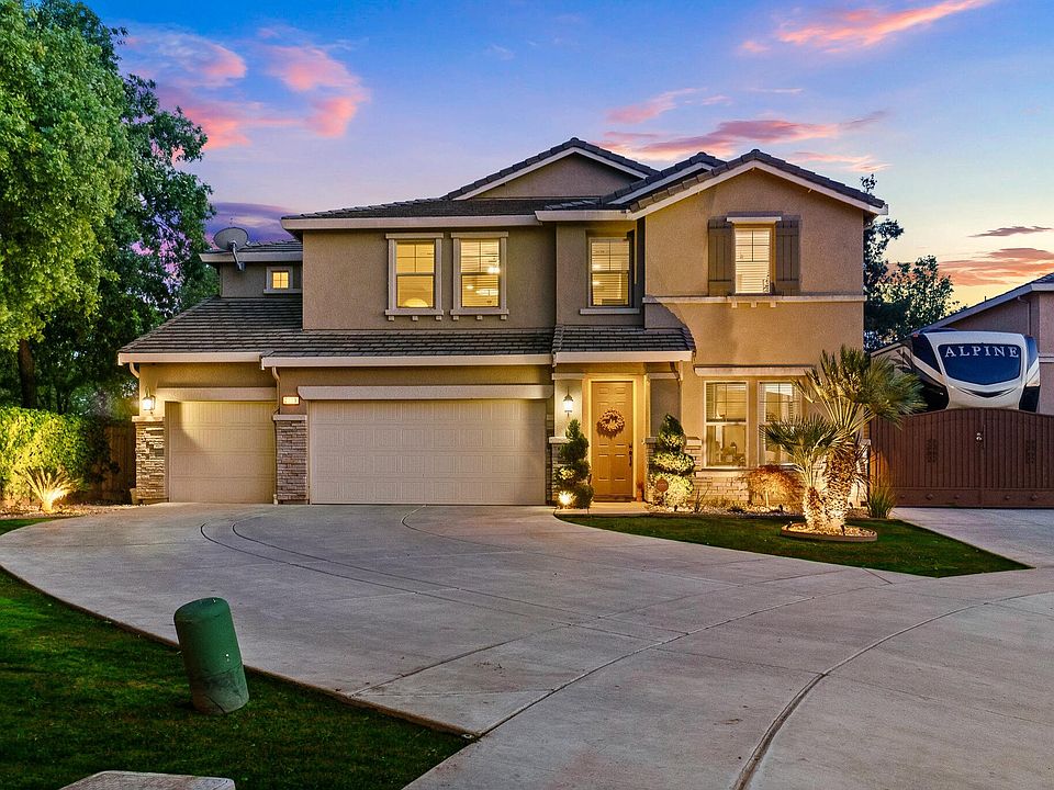 Welcome to your dream home! Nestled in highly sought-after SE Tulare, this stunning 4 bed, 3 bath residence epitomizes modern luxury living. From the meticulous landscaping to the tasteful interior, you'll be captivated by the beauty and charm that this home exudes. This exceptional property offers curb appeal, RV parking, solar, plush carpet, and more! Step inside to discover the inviting atmosphere of comfort and style, with thoughtfully designed living spaces that cater to every lifestyle. The heart of the home lies in the kitchen, where sleek granite countertops, stainless steel appliances, and a generous island/breakfast bar await the entertaining enthusiast. Adjacent to the kitchen, the cozy family room welcomes you with its high, two story ceiling and built-in entertainment center. The formal living and dining area share a space in the front of the home, along with a main floor laundry room. The guest bed and bath are conveniently located on the main level, with the remaining bedrooms upstairs for added privacy and comfort. Retreat to the primary suite, complete with an ensuite bathroom and walk-in closet. Additionally upstairs you'll discover a spacious loft area boasting a built-in entertainment center and a convenient built-in desk space, perfect for both relaxation and productivity. Step outside to your own private paradise, where relaxation meets entertainment. Host unforgettable gatherings while you take a dip in the saltwater pool or lounge under the covered patio or gazebo. Located in one of Tulare's most desirable neighborhoods, this home offers the perfect blend of tranquility and convenience, with easy access to shopping, dining, parks, and schools. Don't miss your chance to make this exquisite property your own. Schedule a showing today and experience the epitome of California living!