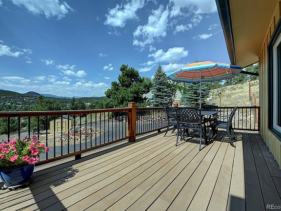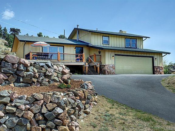 Perched on a south-facing knoll with wonderful views, this updated and impeccably cared-for home has it all. Fully remodeled kitchen, new master suite, new windows and air conditioning are just a few of the upgrades that you will find, and it's also conveniently located in central Evergreen. The main level has been fully opened up for today's open concept living, and redone with cypress wood flooring, addition of a powder room, and a stunning spacious kitchen with cherry cabinetry, stainless appliances, gas stove, granite counters, and aspen-wood breakfast bar. You can enjoy the views through the large living room window or check out the snow-capped mountain views from the sunny re-engineered deck. The cozy family room features a wonderful rock fireplace and hearth with a new gas insert. Step out back on the deck with your coffee and watch the sun rise. The new master suite is downstairs with a huge walk-in closet and heated floor in the bathroom. Outside, you have a paved driveway with extra parking spaces, a darling "she shed", and a spacious storage shed out back. The garage is oversized with cabinetry. There is a fenced yard as well. With 4 bedrooms and 3 1/2 bathrooms, you have lots of space for an office and work out room too. Move in worry free as the basics are taken care of with a 2008 furnace, 2009 30-year roof, 2018 hot water heater, and 2018 whole house air conditioning. All this in a central Evergreen location close to all the amenities with an easy commute to Denver or the mountains!
