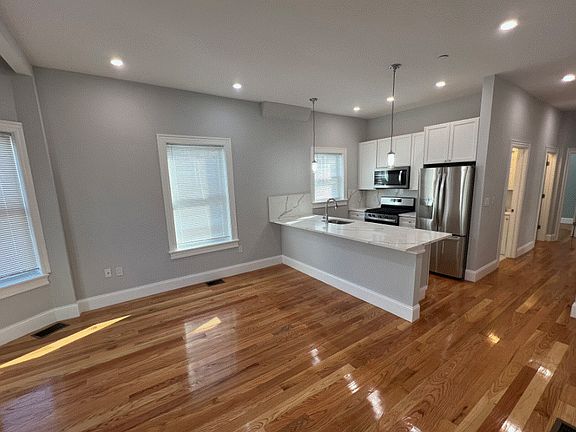 Up front just Security and Broker. Located in the vibrant Spring Hill/Magoun Square area, this beautifully renovated first-floor apartment offers modern living with exceptional convenience. Just steps from the Magoun Square Green Line T, this spacious three-bedroom, two-bathroom home was fully updated in 2022. The sleek kitchen features stylish cabinetry, stainless steel appliances, and stunning white-granite countertops. Hardwood floors flow throughout the unit, complementing the contemporary tiled bathrooms. Enjoy the comfort of central heating and air conditioning, as well as the convenience of in-unit laundry. A private rear deck provides the perfect space to relax, while street parking with a city permit and optional off-street parking for rent add to the home's accessibility.