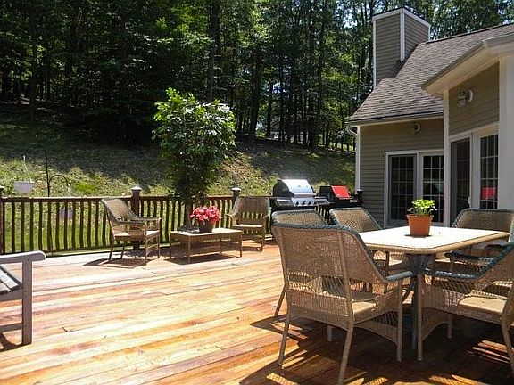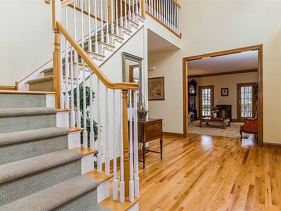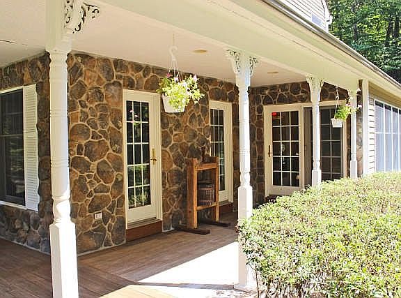 Quiet and secluded with scenic wooded vistas, enjoy the blissful uninterrupted surrounds of this effortlessly modern home. This stunning house shows off a custom kitchen, beautifully appointed baths, and plenty of space to entertain and relax in as just some of the highlights. Natural light is maximized throughout stylish rooms. A two-story entry introduces guests to vibrant, gathering spaces including a sunken great room with stone fireplace and an adjoining billiard room/conservatory. Living and dining rooms are opposite one another and look onto the expansive wraparound front porch. The kitchen shows off stainless steel Jenn-Air appliances, maple cabinetry, granite counters and island seating plus a breakfast room. The master's private en suite contains a soothing tub and a walk-in shower. An impressive finished basement furthers the floorplan of this character-filled home as does the bonus room with private entrance and bath. A beautiful stone and cedar exterior blends with the natural environment in this peaceful and private setting.